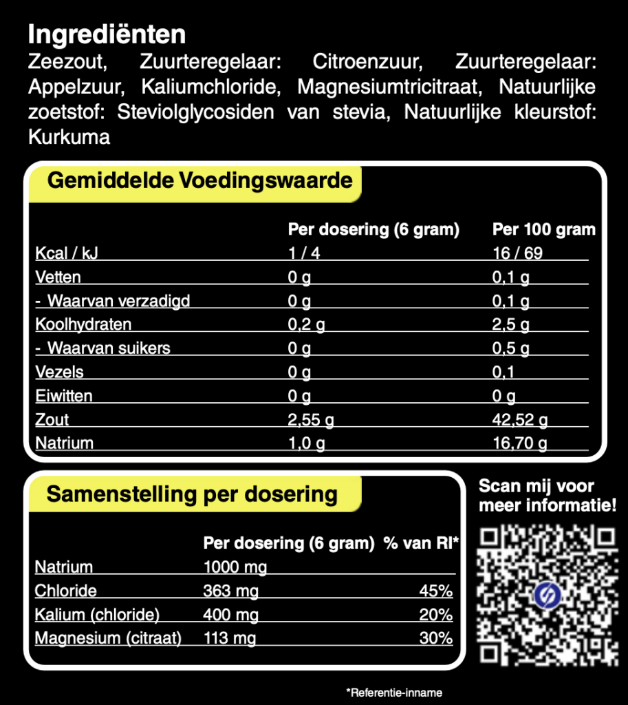 Electrolytes is een voedingssupplement dat is ontworpen om de elektrolytenbalans in het lichaam te ondersteunen. Het is bedoeld voor mensen die intensief sporten, een ketogene levensstijl volgen of anderszins behoefte hebben aan een aanvulling van elektrolyten, zoals bij uitdroging of tijdens warme weersomstandigheden.
